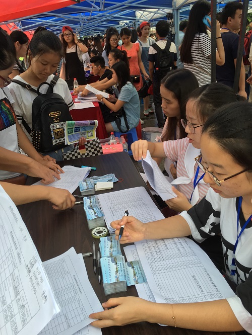 2016年9月10日,伟德国际1946迎新工作全面启动。在迎新现场,伟德国际1946团委员工会工作人员无微不至的关怀以及热情周到的服务让很多新生消除了初来乍到的陌生感,家长们也都放下心来,不用过于担心孩子在公司不适应。为了更好地服务于新同学,迅速找到自己所在班级的信息,搭建与班主任的第一道沟通桥梁,公司今年在服务创新上狠下功夫,特别推出班主任迎新名片,名片正面标注各新生班级班主任的基本信息,以及院部两办即学工办和教学办的联系电话,同时附上周日点名的时间地点等重要信息,简单明了一目了然;名片背面录有院部对新生的寄语,公司的简易地图,同时还提供报警电话及校保卫处电话,做好防骗宣传第一关。班主任迎新名片的推出极大地解决了新生入班的基本问题。
