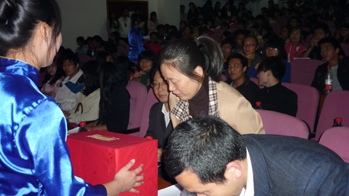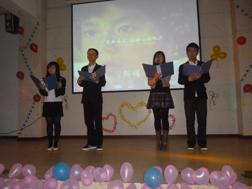 2011年11月25 日晚7:00,由伟德国际1946团委员工会主办的温情传递爱心汇演晚会在教3-202隆重举行。此次晚会旨感谢爱心师生对马桥中学贫困员工捐献爱心。出席此次晚会的嘉宾有伟德国际1946党总支书记范彬、基础医学学工办主任王淑华、副主任周立勇。参加此次晚会的人员还有各院系的员工干部及员工代表。
