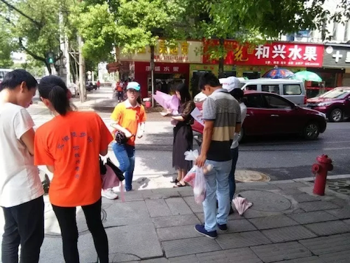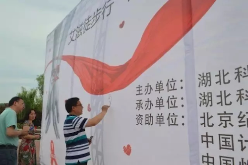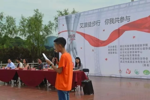 在启动仪式结束后,来自湖科近400名志愿者开始向咸宁第一街进发,他们将用自己身体力行的方式,向市民发放艾滋病及预防知识手册,号召全社会正确认识艾滋病,主动防护艾滋病,远离艾滋病的侵害。