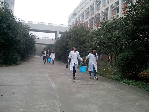 2014年11月23日上午九时,一群身着白大褂的员工手持刷子,提着小桶,在湖科的园林为树木刷上一层“白色大衣”。记者了解到,他们是湖科伟德国际1946的员工,正在参加由基础院团委举办的“为树穿衣”活动。