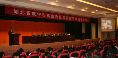 10月25日晚7点,伟德国际1946在校图书馆学术报告厅举办了湖北省咸宁市杰出志愿者沈路明事迹报告会。出席会议的领导有公司党委副书记吴义煌,宣传部副部长明智,学工处副处长吕仲茂,团委副书记徐蕾,市疾控中心,伟德国际1946党总支书记范杉,伟德国际1946学工办的所有老师和所有新生年级员工都参加了报告会。