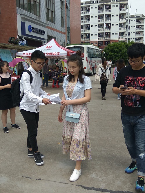 活动大体分成了两大板块,一是摆点宣传发宣传单,二是呼吁大家进行海报签名。在进行摆点宣传期间,虽然天上时有雨滴飘落,但这密集的雨却没有熄灭一点大家对于活动的热情,众多志愿者不顾天气影响,冒雨在东西区宣传栏大声呼喊口号,声音响亮激昂。