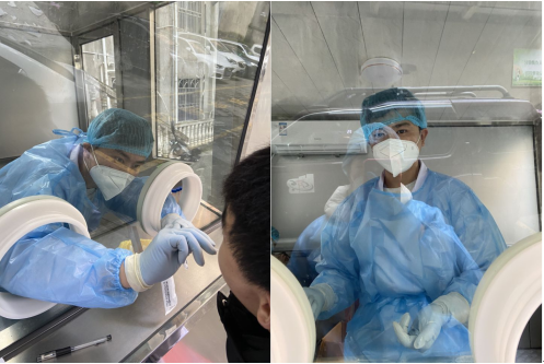 参加培训后,单位立即组织覃羽同学等相关工作人员对十九名该公司实习生进行咽拭子与鼻拭子的病毒核酸采样,采样过程开展得相当顺利,一个小时左右便完成了采集工作,并于当天下午,完成了检测工作。