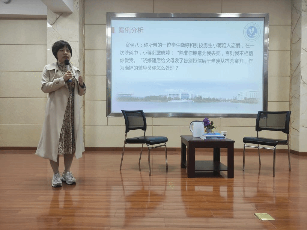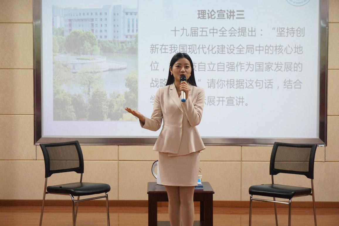 本次辅导员素质能力大赛分为初赛和决赛两个部分,经过基础知识测试和网文写作等初赛环节的层层选拔,最终有五名辅导员脱颖而出晋级决赛。在由辅导员金伟老师领誓,全体辅导员起立宣读辅导员誓词后,决赛正式开始。本次比赛共设有“理论宣讲”、“案例分析”和“谈心谈话”三个环节。在“理论宣讲”环节中,参赛选手们以扎实的政治理论素养,围绕“党史学习教育”、“将青春奉献给党和人民”、“坚持创新精神”等五个主题做出精彩宣讲,展示了辅导员对马克思主义理论、习近平新时代中国特色社会主义思想、党的十九届五中全会精神等的学习宣传及阐释能力。