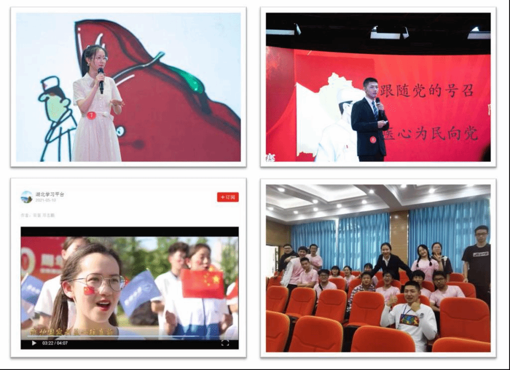 2021年5月8日,侯林、肖雨心同学经医心科普工作坊林莉指导,在“医路向党”首届医学科普讲解大赛决赛中表现突出,分别取得一等奖和优秀奖的好成绩,杨美婷同学也积极参与此赛事宣传片《少年》的录制,该宣传视频获得了学习强国、湖北日报等多家媒体转载,社会反响良好。