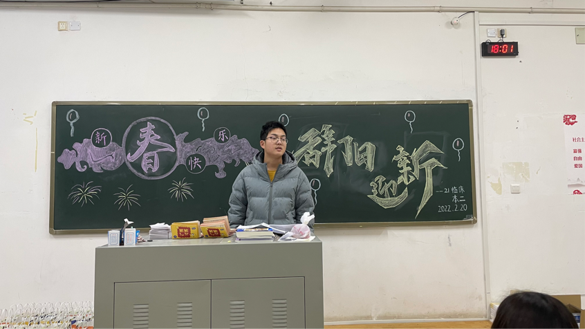 (通讯员 林小驰)时钟滴答分分秒秒,光阴飞纵岁岁年年。为了丰富班级文化生活,增强班级凝聚力,展示师生风采,2022年2月20日晚医学部21临床医学2班在教学楼7栋204开展“辞旧迎新,新年新气象”主题班会。