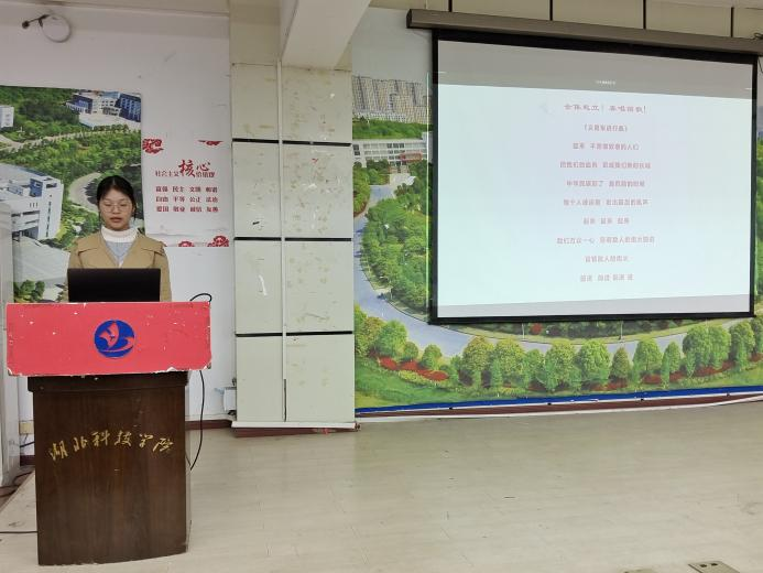 会议伊始,刘君梦同学向大家介绍本次会议的议程。并在刘君梦同学的组织下,全体成员起立,奏唱国歌。伴随着嘹亮的国歌声,此次大会正式展开。