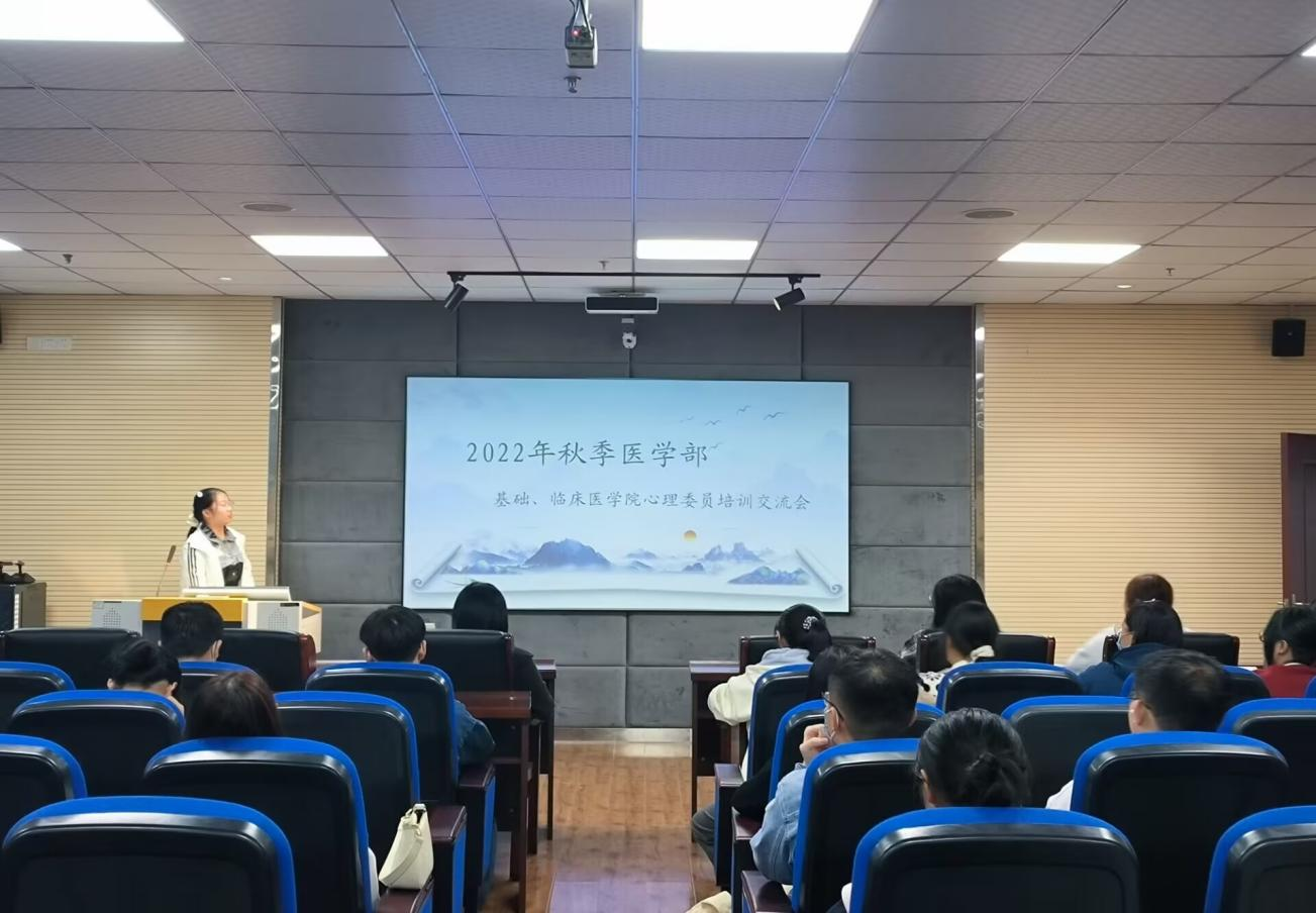 10月28日晚上,伟德国际1946、临床院在医药楼三栋录播室召开心理委员培训会。培训会由心理专干汪晓娟老师指导,心理部部长吴媛媛同学主持,22、21级基础、临床院各班心理委员参加培训。