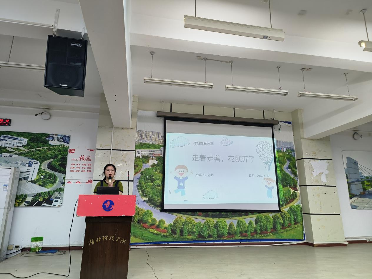 分享会上,各位优秀学子从自身考研经历出发,围绕院校和专业选择、备考规划、学习方法、心态调整等方面展开,向同学们分享了考研经验,强调备战考研要夯实专业基础、提高政治素养和丰富英语阅读能力,并向同学们推荐了一些复习资料。他们指出考研的成功等于正确的方法加之不懈的努力,考研是一场持久战,学弟学妹们要在考研期间放松心态,学会调整心态,保持自己的节奏。他们清晰的条理,幽默的语言,带来的满满考研干货,赢得了同学们的热烈掌声。