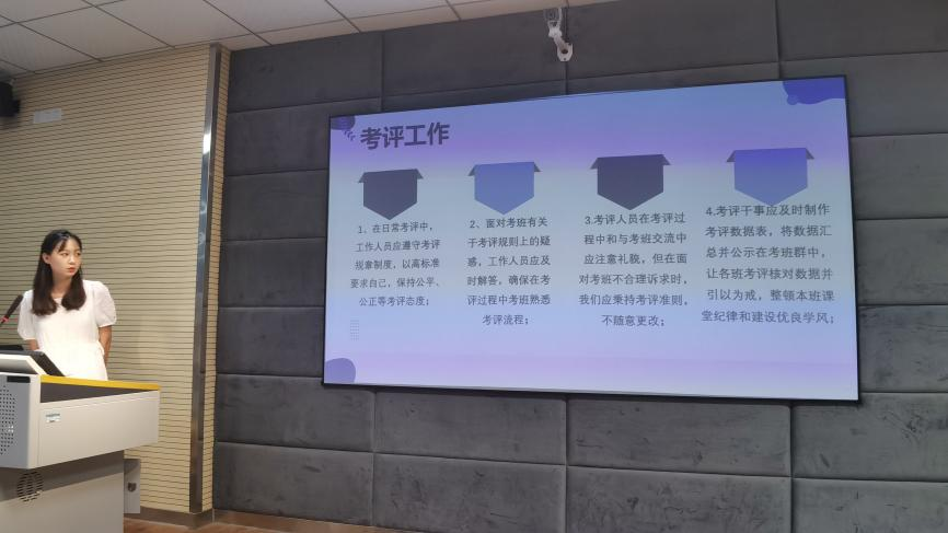 会议上,各部门负责人依次上台进行述职报告演讲,对其部门一学年的工作情况进行总结汇报。述职中,各部门负责人简明的概述了工作中的收获与不足,并提出了今后的整改措施和工作计划的方向以及对各自部门活动提出了一些创新性的建议,希望在今后的工作中各部门能够相互帮助,取长补短,共同进步将伟德国际1946团委员工会打造成一个更好的集体。同时,各部门负责人也简述了自己部门中成员的经历变化,从略知到可见的进步成长。