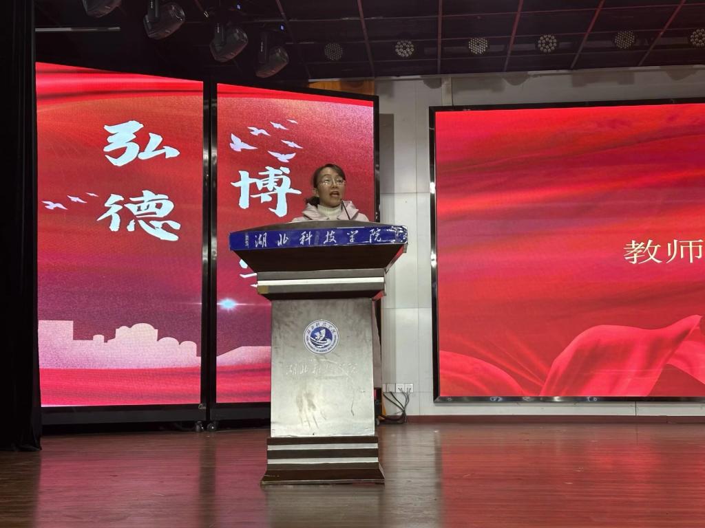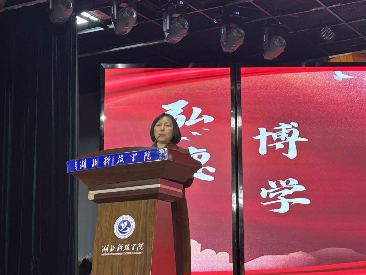 优秀教师代表周惠萍结合指导员工获全国大赛银奖的参赛经历,鼓励在校同学坚定信念,积极参加学科专业竞赛,锻炼综合能力,夯实专业基础,明确发展方向,持之以恒的追逐梦想。