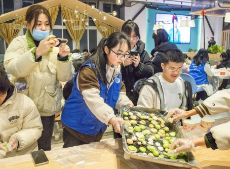 师生们踊跃参加了包汤圆、猜灯谜、圈圈乐等活动,在自主献唱的动人歌声的烘托下,现场气氛和谐活跃,欢笑声此起彼伏。大家包出了寓意“事事平安”的柿子形状以及各种自创样式的汤圆,在品尝的过程中不时交谈畅想;在一排排挂着的灯谜面前,有人驻足思索,有人缓步前行,有人欣喜揭下;大家用猜对的灯谜换来数量不等的套圈,投向或近或远的奖励零食,纷纷收获自己的一份小小确幸。集体班会就像一艘行将开启的航船,载着轻松和欢笑,为师生们掀开了新一年工作学习的希望与收获之旅!