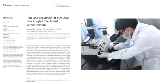 该论文综述了转录因子FOXO3a在乳腺癌治疗中的潜在意义并系统归纳了以FOXO3a为靶标治疗乳腺癌的小分子化合物候选药物,为靶向FOXO3a的药物开发研究阐明了一定的理论基础及临床应用前景。