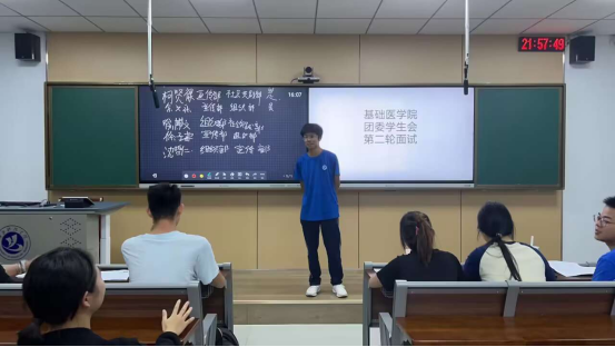 面试环节分为自我介绍和现场问答两个部分。在自我介绍环节,新生们轮流上台,用简洁明了的语言介绍自己的基本信息、兴趣爱好和对未来工作的设想。而在现场提问环节则像一场充满变数的智力风暴,精准地考察新生的应变能力,对学习、工作的协调以及对未来工作的思考。在轻松的一问一答中,新生对员工工作的理解不断加深,同学们之间的情感也不断升温,促进公司和谐友善校园氛围的建设。