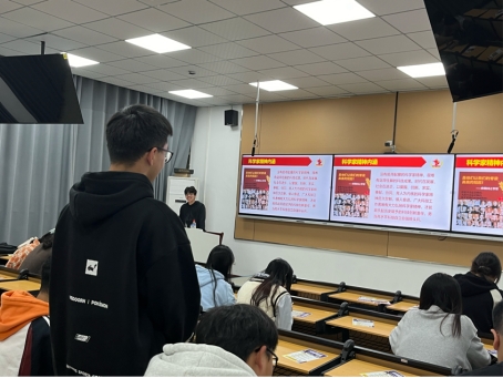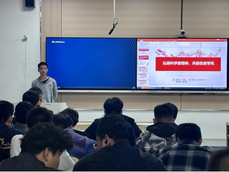 班会伊始,学习委员带领同学们学习科学家的精神:一是追求真理、勇攀高峰。科学家精神以探索未知、揭示客观规律为己任,不断推动科学进步和创新发展。二是严谨治学、精益求精。科学家在科研工作中注重实证精神、严谨态度和精细方法,力求研究成果的科学性和准确性。三是集智攻关、团结协作。科学家精神强调集思广益、协同合作,共同攻克科学难题,推动科技事业不断向前发展。