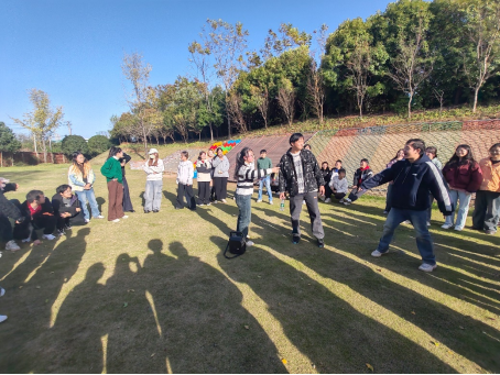 素质拓展环节,首先进行的是“听歌识曲”比赛。同学们通过抽签分成五个小队,并围成一个圈。音乐响起,主持人倒数结束后,知道答案的同学如离弦之箭般冲向中间的瓶子,抢到瓶子的同学需在十秒钟内说出歌名、歌手,并演唱两句,答对即可为所在小队积分。经过多轮激烈角逐,绿色队伍凭借出色的音乐素养和敏捷的反应速度脱颖而出,拔得头筹。游戏间隙,孟梓栋同学从背包中取出小提琴,为大家带来了一场精彩绝伦的即兴演奏。悠扬的琴声如潺潺流水般在花园中流淌,吸引了众多同学驻足聆听,大家沉浸其中,仿佛时间都为这美妙的音乐而静止。
