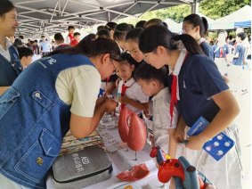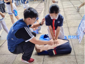 9月5日,咸宁市第一高级中学的开学第一课同样“高能”。标本陈列馆团队把“应急救护”搬进操场:模拟人教具一字排开,员工轮番上阵体验心肺复苏。“01、02、03……按压深度5厘米、频率100—120次/分钟”的口令声此起彼伏,短短20分钟,200余名员工通过“黄金4分钟”实操考核。随后,志愿者借3D人体模型、细胞AR卡,层层解密“人体九大系统如何协同作战”,把抽象知识讲成“运输兵”“信号员”的故事,掌声笑声贯穿全场。