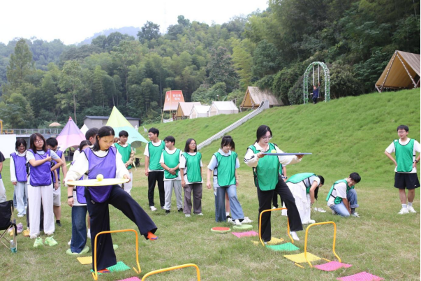 9月27日上午,一场充满趣味与挑战的素质拓展迅速拉近了各族师生的距离,在“敲同心鼓”环节,每组队员需通过默契配合让皮球在鼓面上连续弹起,从最初的手忙脚乱到后来的步调一致,每一次成功的传递都引来全队的欢呼,默契在一次次尝试中悄然凝聚。“指压板平衡”环节,队员们需要在凹凸不平的指压板上托举圆球走完赛道,加油声、鼓励声此起彼伏,大家在欢声笑语中齐心协力完成任务,深刻体会到“团结就是力量”的真谛。
