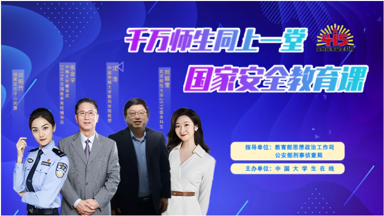 本次国家安全教育课以围绕“贯彻总体国家安全观,增强全民国家安全意识和素养,夯实以新安全格局保障新发展格局的社会基础”主题,全面部署开展国家安全教育日主题活动,围绕主题策划组织形式多样的宣传教育活动,突出活动的针对性和实效性,进一步推动总体国家安全观深入人心、落地生根,引导员工挺膺担当时代新人,共筑国家安全防线,将全国高校师生学习国家安全教育氛围推向高潮。在公开课上,中国传媒大学新闻公司教授沈浩、2019年全国最美高校辅导员张金学、国家反诈中心民警刘明竹等纷纷站上了云端讲台,讲述了当前国家安全和保密工作面临的挑战。