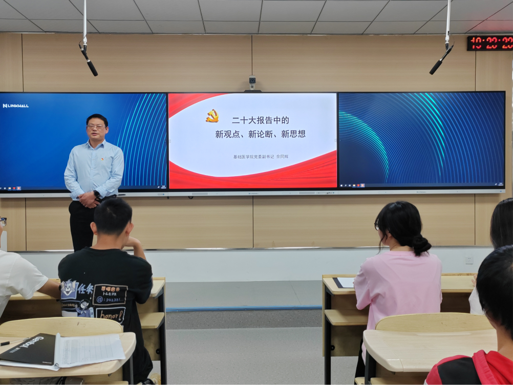 5月3日晚,伟德国际1946党委副书记佘同辉在2022级临床本一班班会上开展以“学习二十大,永远跟党走,奋进新征程”为主题的“书记讲·讲书记”宣讲活动。