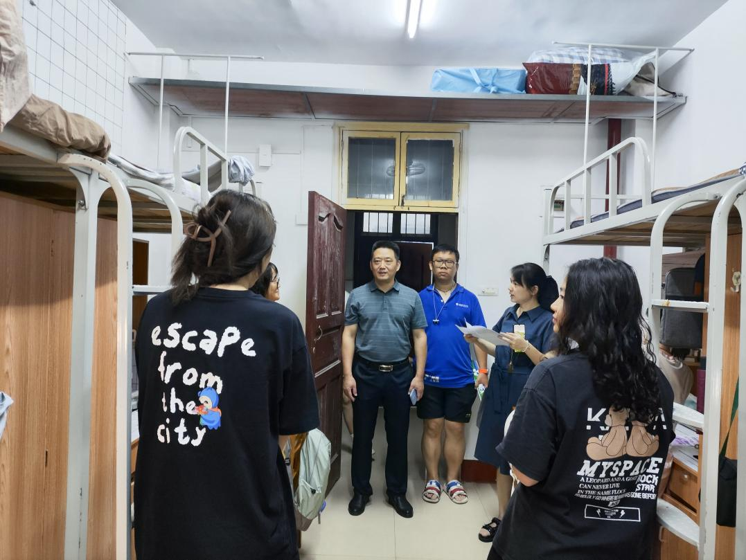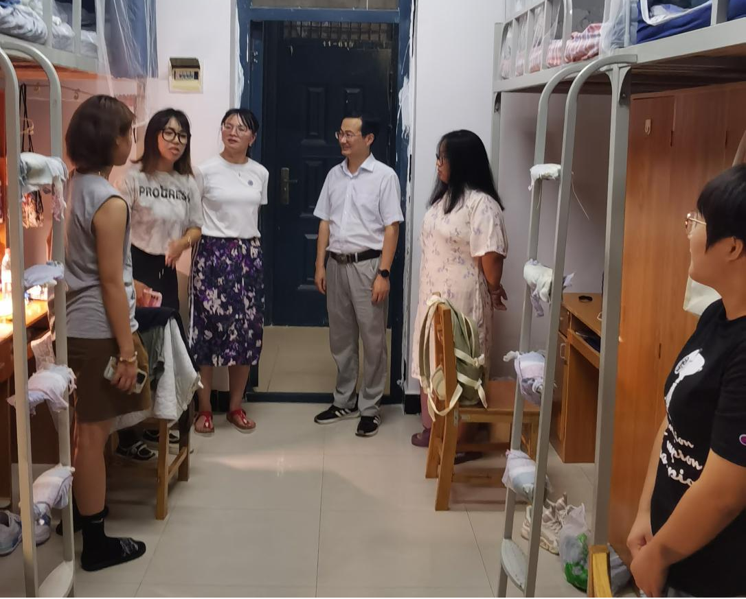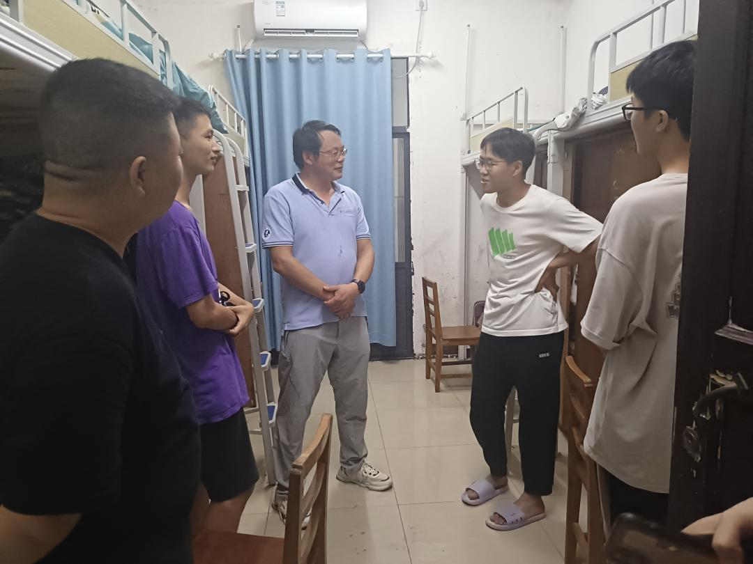 为深入了解2023级新生入学情况,及时了解员工的思想动态、心理状况,帮助新生尽快适应新环境,9月10日晚,伟德国际1946经理蔡飞、党委副书记佘同辉、副经理蒋汝刚带领2023级新生班主任和辅导员走访新生宿舍,看望刚刚入学报到的新同学。