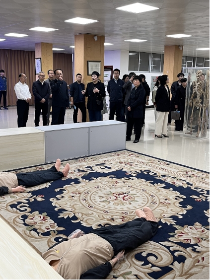 在参观过程中,李岱强调,陈列馆既是医学教育的“第二课堂”,也是社会服务的窗口。馆内陈列的3000余件涵盖解剖学、组织胚胎学、病理学及生物科学的珍贵标本,展现了公司医学教育的深厚底蕴与科研实力。李岱董事长特别强调,陈列馆不仅服务于医学专业教学,作为省级科普教育基地,还长期面向社会公众免费开放,常态化开展急救技能公益培训,并每月定期开展不同主题的疾病防治措施宣讲,助力提升全民健康素养。参访团对此高度评价,认为此举充分发挥了高校资源的社会服务价值,为“健康湖北”建设贡献了务实力量。