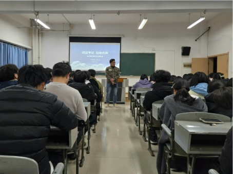 班会伊始,各班主讲人明确近期关键考试节点,强调全国大学英语四级考试将于12月13日开考,校内期末考试安排在第19至20周。结合临床医学专业人才培养要求,主讲人着重指出,诚信应考不仅是遵守考场规则的基本准则,更是医员工涵养医德、筑牢职业素养的重要前提,号召全体同学以诚信态度对待每一场考试。随后,各班考评班长带领同学们逐条学习考场纪律细则,明确入场需携带准考证、身份证等有效证件,答题需使用规定文具、严禁在试卷上做标记,考试结束需按指令规范交卷等核心要求,并提醒大家提前做好考前准备,避免因细节疏忽触碰纪律红线。