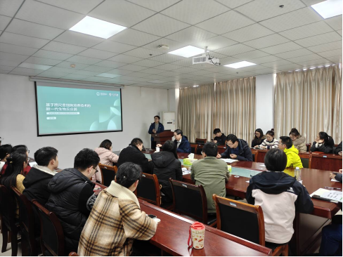 交流会上,天木生物高级研发工程师、发酵检测端产品经理强书敏博士担任主讲,作了题为“基于跨尺度细胞培养技术的新一代生物反应器”的专题报告。强书敏博士毕业于江南大学发酵工程专业,获工学博士学位,近年来主要从事酶的结构解析与理性设计、酶的固定化应用、液滴微流控技术等方向的研究,其工作涉及基于酶的生物传感器开发、食品药物安全监测、快速离子检测、发酵过程中代谢产物的在线检测以及相关微流控装备的研发与应用,具有深厚的学术背景和丰富的产业实践经验。报告中,他系统介绍了相关技术原理、最新成果及在生命科学研究和生物产业中的具体应用场景,其前沿的视角和详实的案例引起了在场师生的浓厚兴趣与热烈讨论。