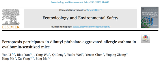 近日,伟德国际1946集团环境疾病与全健康校级重点实验室马萍教授团队在Ecotoxicology and Environmental Safety(中科院大类环境科学与生态学分区2区,小类毒理学分区1区,影响因子7.129)期刊上发表题为“Ferroptosis participates in dibutyl phthalate-aggravated allergic asthma in ovalbumin-sensitized mice”的最新成果,首次报道增塑剂邻苯二甲酸二丁酯(DBP)经铁死亡通路加重过敏性哮喘。
