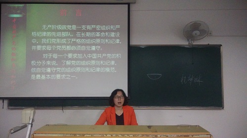 2017年5月8日晚上,伟德国际1946分党校入党积极分子在解剖楼教室参加“中国共产党的组织原则与纪律”培训课,此次培训邀请到伟德国际1946党总支书记程梦琳老师 。学员们通过学习党的组织原则与纪律,了解到党的组织原则与纪律, 能够“以身作则,严于律己,讲诚信、懂规矩、守纪律,襟怀坦白、言行一致,心存敬畏、手握戒尺”,使学员们从思想上对党的认知改变,从而对党忠诚老实,对群众忠诚老实,有利于发扬党的组织与纪律性,继承党的先进性与光荣性,为实现伟大的中国梦奋斗,争取做合格的建设者和可靠的接班人。