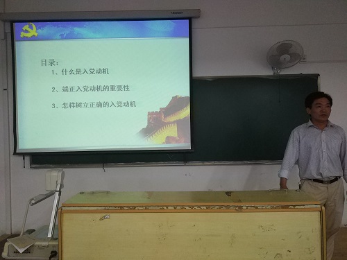 5月12日晚上,伟德国际1946分党校入党积极分子在解剖楼教室参加“入党动机教育”培训课,此次培训邀请到伟德国际1946副书记李应续老师。学员们通过学习党员入党动机的重要性和如何确立有必要的入党动机,以及如何树立正确的入党动机。李老师向学员们提出许多建议,认为最主要的是态度问题,态度可以决定一个人的品质,而品质决定人的人格。入党积极分子应该怎样接受党组织的考验,需要每个学员认真地去经过长时间的学习、思考、实践活动,以实际行动争取做一名合格的共产党员。