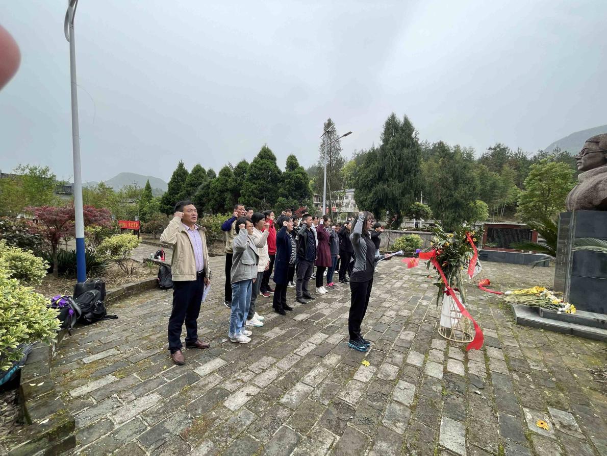 在革命烈士纪念碑前,全体党员干部整齐列队、庄严肃立,怀着崇敬的心情向长眠于此的陈寿昌烈士鞠躬默哀,并敬献鲜花。朵朵菊花在烈士纪念碑前绽放,也和同志们一样满怀虔诚纯粹的敬佩之心瞻仰着陈寿昌烈士。在鲜红的党旗下,全体党员高举右手重温入党誓词,以铮铮誓言向党宣誓,坚定理想信念,筑牢初心使命。