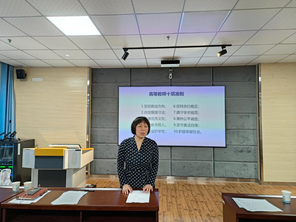 入职仪式上,新教师刘武、冷东泽、余优、潘丹、鲁素蕊等5人分别对各自情况做了自我介绍,并分享了入职湖科的初心和未来的规划与展望。随后进行了新教师入职宣誓仪式,全体教师重温《新时代高校教师职业行为十项准则》,与会教师紧握右拳,庄严宣誓。“我宣誓坚定政治方向、自觉爱国守法、传播优秀文化、潜心教书育人……”的铮铮誓言,彰显了教师的神圣责任和光荣使命。