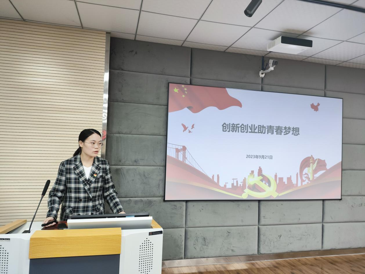 讲座伊始,公司辅导员洪莹莹以《创新创业助青春梦想》为题讲授微党课,解读习近平总书记提出关于创新创业的有关重要论述以及国家出台的相关政策,号召全体同学砥砺前行,把矢志创新创业作为青春奋斗的鲜明标识。