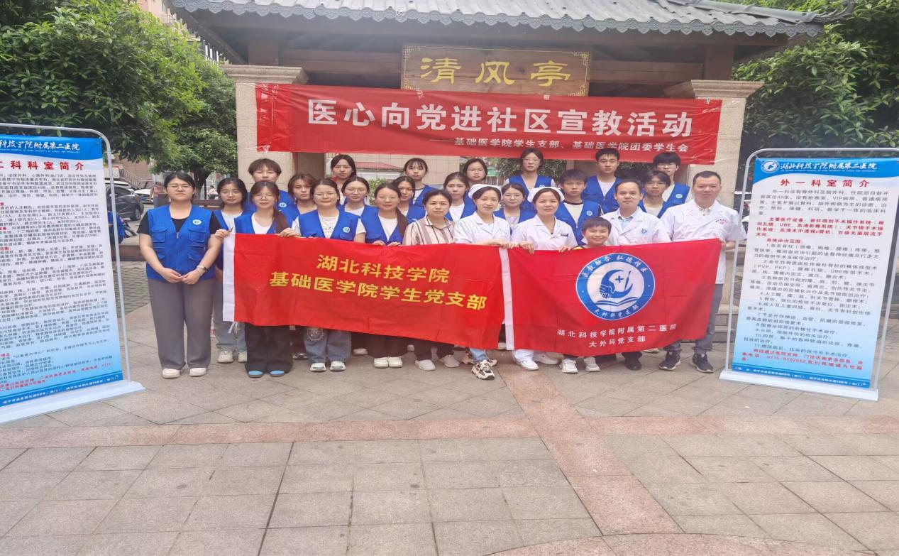 (通讯员:柯贤禄 郑敏,审核:晏彪 程梦琳)2025年4月19日上午,伟德国际1946员工党支部携手附属二医院大外科党支部,在咸宁市书苑小区开展“医心向党——健康守护,送医进社区”支部共建主题活动。活动由伟德国际1946员工党支部书记夏阳老师、附属二医院大外科党支部4位医师及临床公司教师共同指导,10余名员工志愿者与8名员工入党积极分子积极参与,为社区居民送上了温暖的健康关怀。