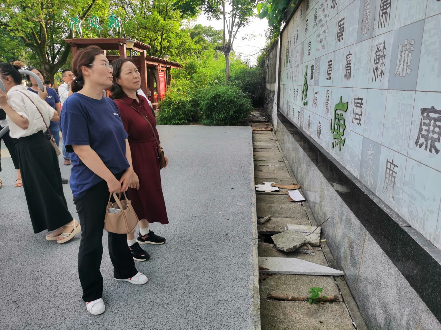 咸宁市桂花廉政主题广场以“清廉守正”为核心,融合了桂花文化与廉政教育元素,通过雕塑、长廊、展板等形式,生动展现了中国共产党反腐倡廉的历史脉络与新时代廉政建设成果。活动中,党员教师们依次参观了“家风金言展区”“廉吏颂歌展区”“明鉴园”等主题展区,驻足品读北宋文学家范仲淹等历史上著名清正廉洁人物的事迹,深刻感悟“公生明,廉生威”的为政之道。展区通过毛泽东、周恩来、刘少奇、朱德、任弼时等老一辈革命家的风采展示,生动呈现了廉洁风范与优良家风,为党员教师树立精神标杆。